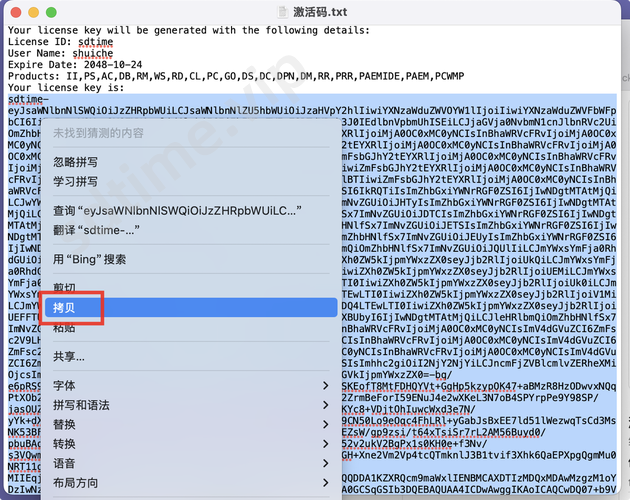 应用程序 -> JetBCrack目录下,会有一个激活码.txt